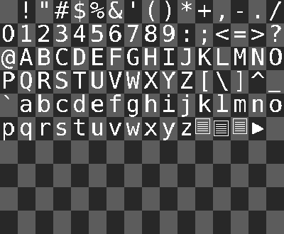 font.bmp contains the bitmap font Toki uses. This is a required file for Toki to run, as a visual novel wouldn’t be a visual novel without text. font.bmp is editable, and you can make your own bitmap font for your Toki game by using the default.bmp fontmap to get the spacing right.